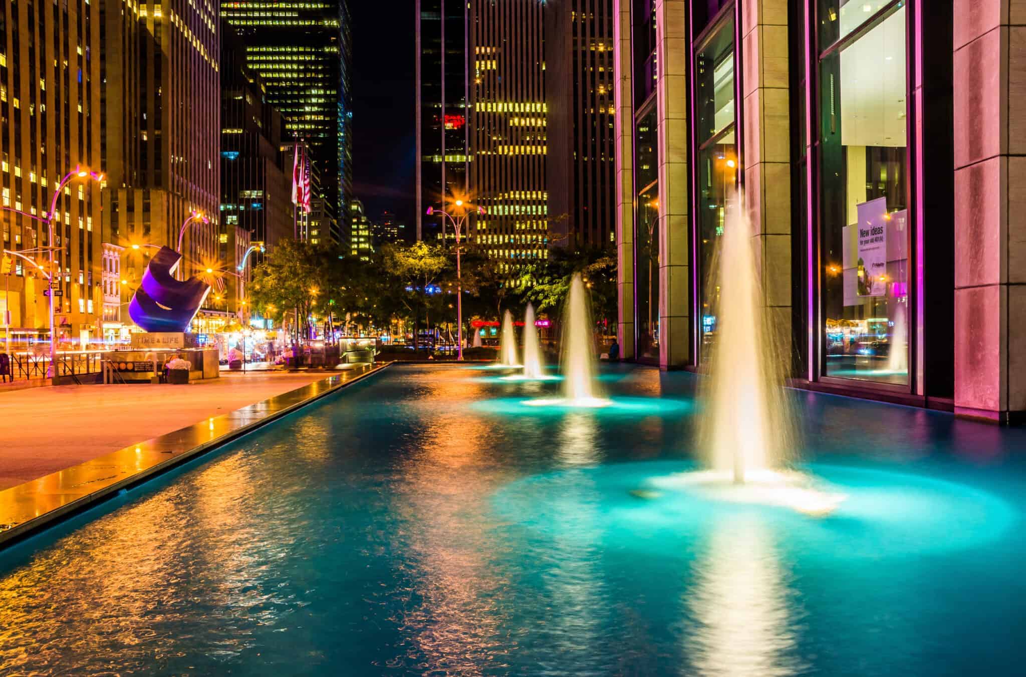Das Rockefeller Center ist ein Muss für jeden Besucher von New York City. Dieses Wahrzeichen von Midtown Manhattan wird durch das ikonische Gebäude 30 Rockefeller Plaza verankert (Heimat der NBC Studios und Inspiration für die beliebte Fernsehsendung 30 Rock), ist aber auch berühmt für das Top of the Rock Observation Deck, die Eislaufbahn, die Radio City Music Hall und eine Vielzahl von Annehmlichkeiten vor Ort.